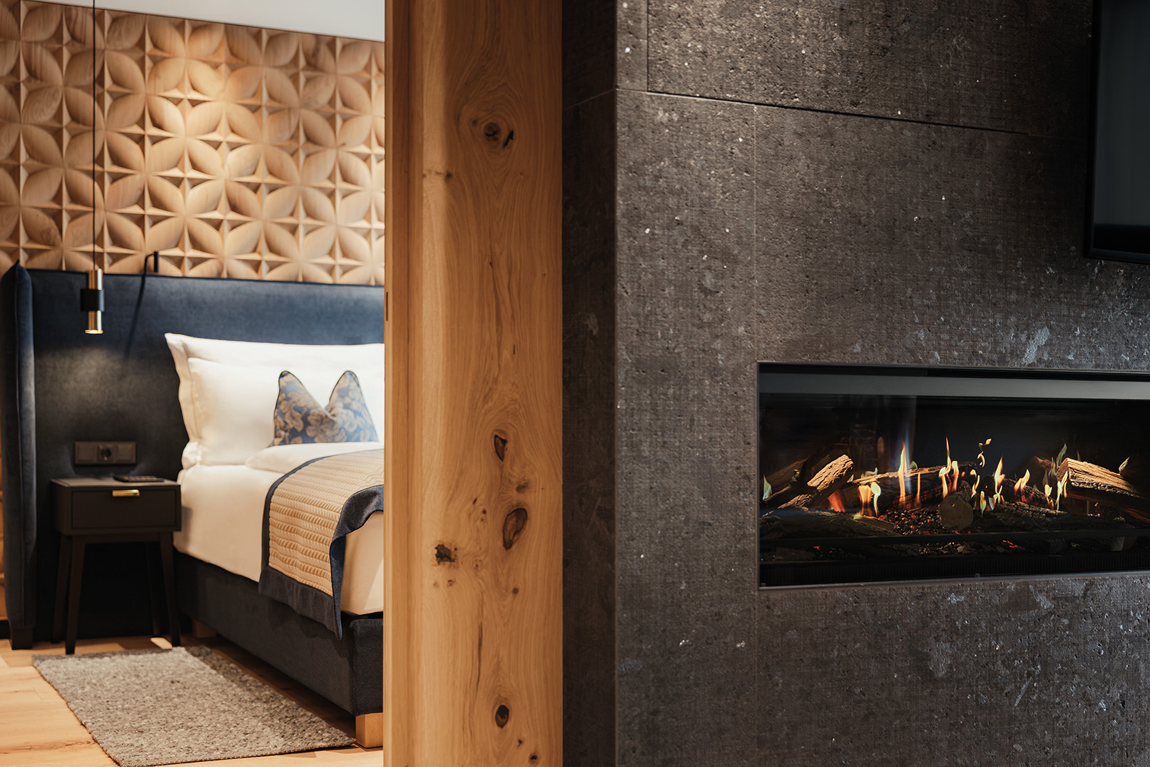 È emozione, luce e movimento, è un elemento che, da sempre, plasma gli spazi e che nell’architettura contemporanea assume forme espressive nuove. Una delle innovazioni più recenti nel campo dell’interior design è il fuoco olografico, dove il gioco di fiamme viene proiettato su ciocchi di legno ceramico realizzati a mano, per un effetto sorprendentemente realistico, completamente sicuro, privo di emissioni e indipendente dalla canna fumaria: camini, per l’appunto, che richiedono esclusivamente il collegamento alla corrente elettrica. Nascono così nuove possibilità per la progettazione degli ambienti, dove il fuoco è elemento centrale, adattabile a diversi concetti architettonici grazie a materiali, rivestimenti e soluzioni su misura: Efesto Home si distingue per prodotti innovativi e progetti unici, nei quali l’elemento fuoco viene ripensato come componente progettuale, tecnologica e atmosferica. Il nome Efesto si rifà infatti alla divinità greca del fuoco simbolo di artigianalità, trasformazione ed energia creativa. Questa origine definisce l’identità dell’azienda altoatesina guidata dai giovani fratelli Ivan e Alex Pertoll: un progetto ispirato alla tradizione, ma orientato al futuro, con al centro soluzioni che uniscono estetica, funzionalità e adattabilità in modo attuale. Il fuoco non viene più inteso solo come fonte di calore, ma come stimolo per nuove idee spaziali, pensato in chiave atmosferica, tecnologica e architettonica.