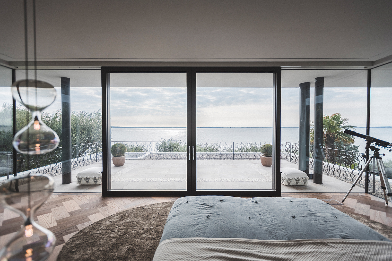 Nello splendore naturale del Lago di Garda prende vita il progetto Villa F: una residenza di lusso immersa tra gli ulivi in cui la luce diviene un elemento di benessere, misura della qualità che trasforma un ambiente in una casa da sentire propria. Una luce tutta naturale che dà origine a un’armoniosa continuità tra spazi interni ed esterni, infondendo all’abitare un comfort dalle tinte luminose e serene. Gli ampi serramenti scorrevoli firmati Wolf Fenster accolgono cascate di sole all’interno delle stanze, permettendo allo sguardo di abbracciare completamente il suggestivo panorama circostante.