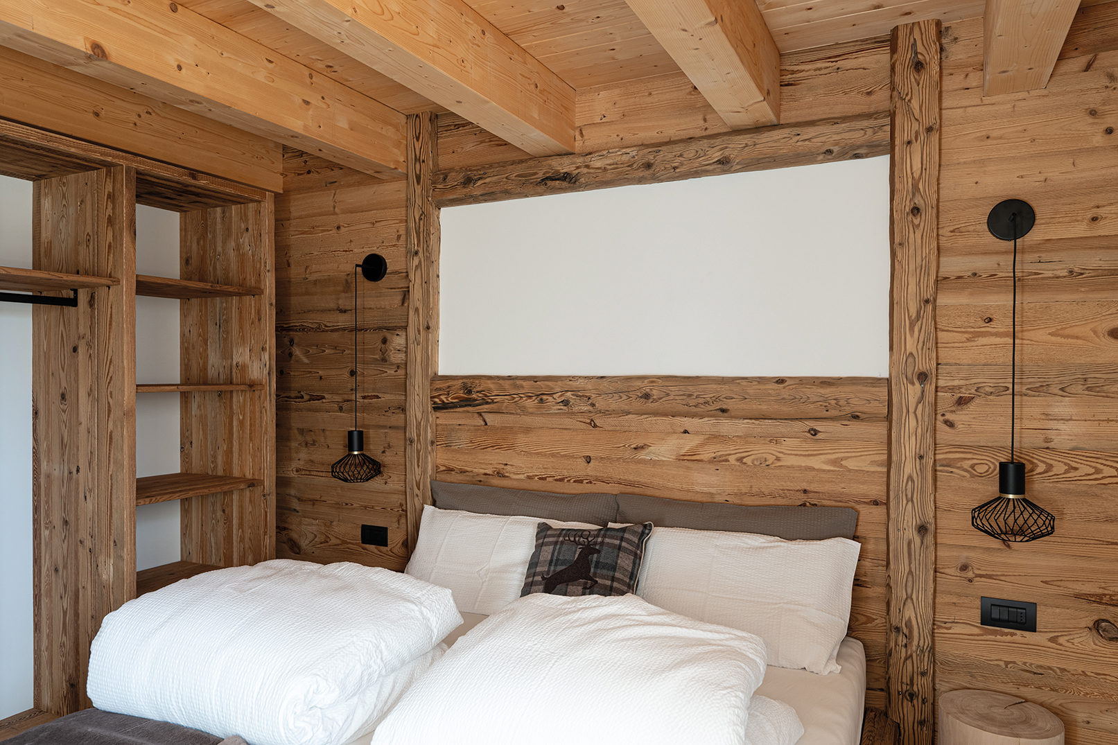 It is in Chalet Brento, an alpine-chic haven nestled in the embrace of Mount Casale, surrounded by Lake Garda and the peaks of Adamello, Presanella, and the Brenta group, that Alpenos has laid down roots, driven by a profound intention: not just renovating places, but bringing them back to life. The restoration of this historic 19th-century structure – abandoned since the 1970s and reimagined by architect Giovanni Giovanelli – was an act of reconciliation with the landscape. After an initial structural rescue of the northern wing, the true challenge began in 2020: to breathe life into the southern half in a way that felt consistent, respectful, and contemporary. For the interiors, the material of choice was cross-laminated timber: fast to install – a key advantage at high altitude – and rich in natural qualities: warmth, breathability, and insulation. Outside, Geopietra clads the surfaces with understated elegance, evoking the original finishes along with the lime-based mortar, while larch wood clads the eastern façade. On the roof, photovoltaic panels – because living the mountains today means, above all, loving them. Forever.